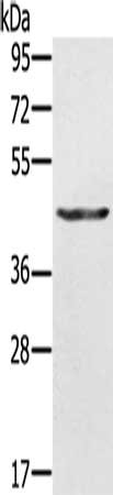 Gel: 10%SDS-PAGE, Lysate: 30 μg, Lane: A549 cells, Primary antibody: CSB-PA122155(KRT31 Antibody) at dilution 1/500, Secondary antibody: Goat anti rabbit IgG at 1/8000 dilution, Exposure time: 10 seconds
