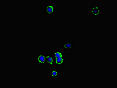 Immunofluorescent analysis of MCF-7 cells using CSB-PA621970LA01HU at dilution of 1:100 and Alexa Fluor 488-congugated AffiniPure Goat Anti-Rabbit IgG(H+L)
