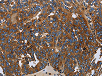 The image on the left is immunohistochemistry of paraffin-embedded Human ovarian cancer tissue using CSB-PA211824(LGALS2 Antibody) at dilution 1/30, on the right is treated with fusion protein. (Original magnification: ×200)