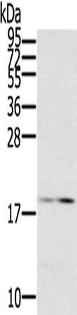 Gel: 12%SDS-PAGE, Lysate: 40 μg, Lane: Mouse small intestines tissue, Primary antibody: CSB-PA211824(LGALS2 Antibody) at dilution 1/300, Secondary antibody: Goat anti rabbit IgG at 1/8000 dilution, Exposure time: 5 minutes