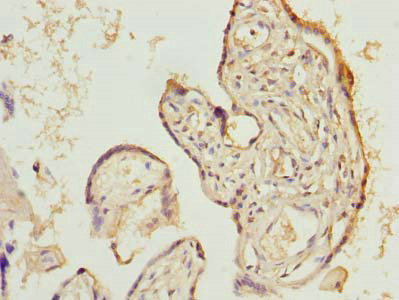 Immunohistochemistry of paraffin-embedded human placenta tissue using CSB-PA822702LA01HU at dilution of 1:100
