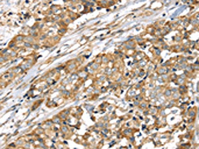 The image on the left is immunohistochemistry of paraffin-embedded Human breast cancer tissue using CSB-PA958239(LONP1 Antibody) at dilution 1/25, on the right is treated with synthetic peptide. (Original magnification: ×200)