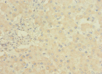 Immunohistochemistry of paraffin-embedded human liver tissue using CSB-PA744274LA01HU at dilution of 1:100