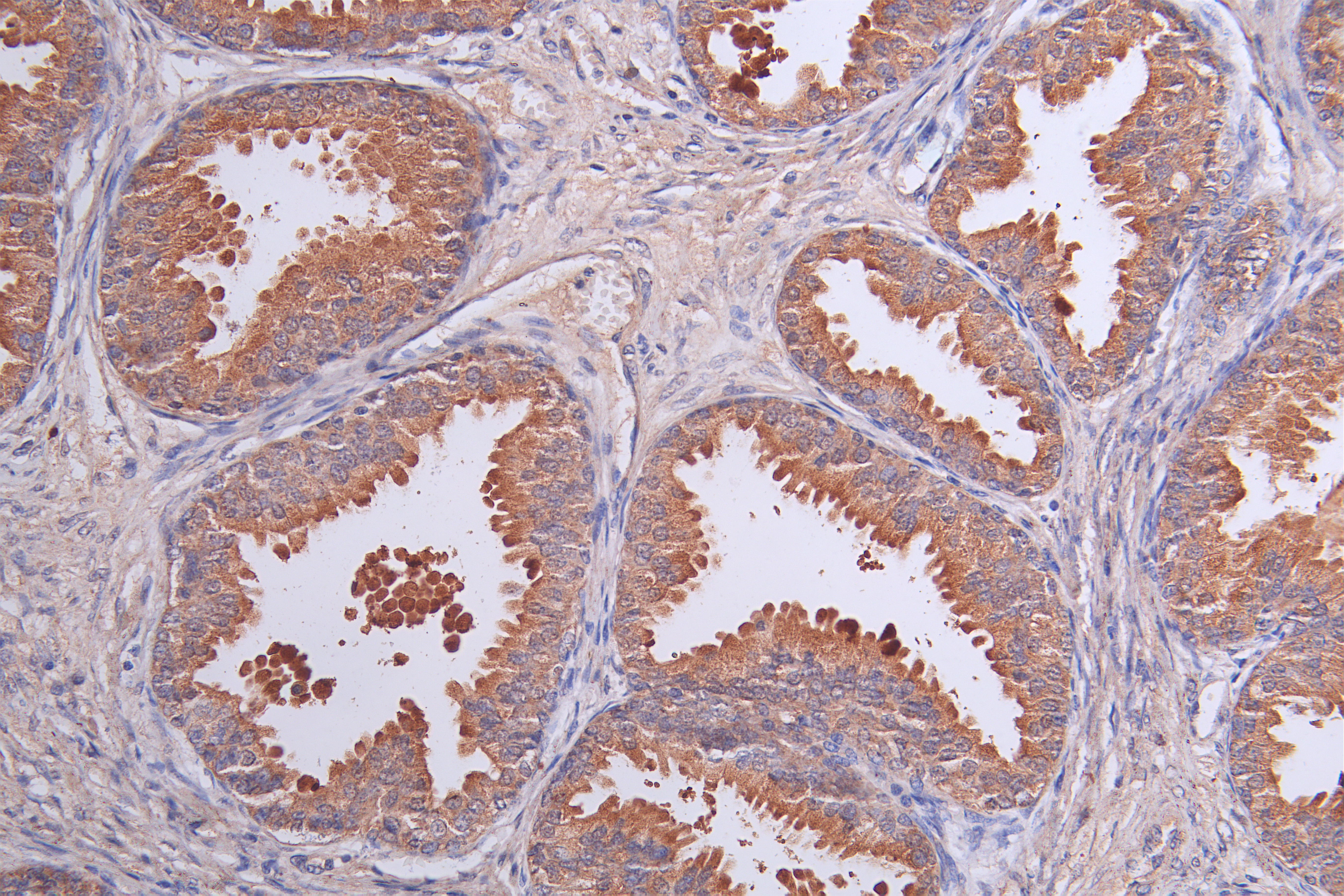 Immunohistochemistry of paraffin-embedded human prostate tissue using CSB-PA880968LA01HU at dilution of 1:50