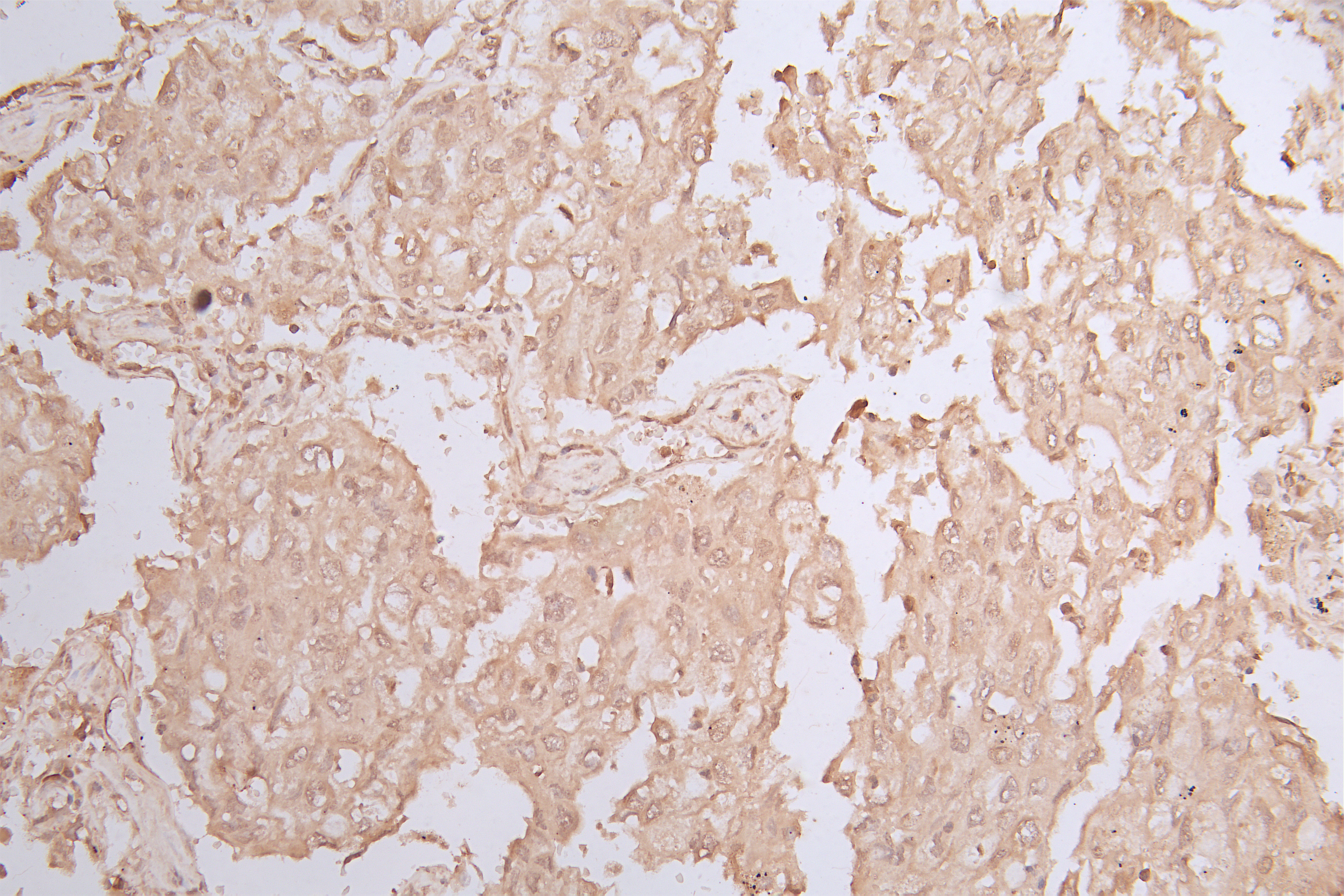 Immunohistochemistry of paraffin-embedded human lung cancer using CSB-PA013207HA01HU at dilution of 1:200