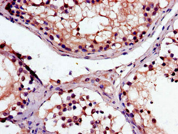 Immunohistochemistry of paraffin-embedded human testis tissue using CSB-PA013369LA01HU at dilution of 1:100