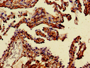 Immunohistochemistry of paraffin-embedded human lung cancer using CSB-PA613697LA01HU at dilution of 1:100