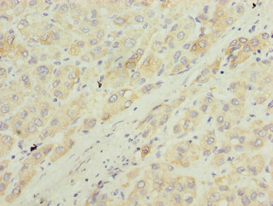 Immunohistochemistry of paraffin-embedded human liver cancer using CSB-PA013398LA01HU at dilution of 1:100