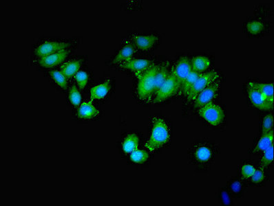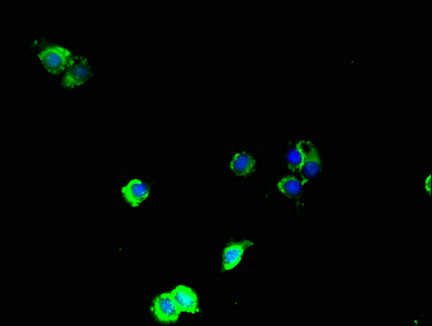 Immunofluorescent analysis of Hela cells using CSB-PA013433LA01HU at dilution of 1:100 and Alexa Fluor 488-congugated AffiniPure Goat Anti-Rabbit IgG(H+L)