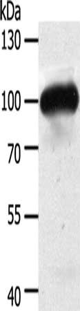 Gel: 10%SDS-PAGE, Lysate: 50 μg, Lane: Mouse heart tissue, Primary antibody: CSB-PA082361(MAP4K3 Antibody) at dilution 1/400, Secondary antibody: Goat anti rabbit IgG at 1/8000 dilution, Exposure time: 10 seconds