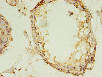 Immunohistochemistry of paraffin-embedded human testis tissue using CSB-PA013452LA01HU at dilution of 1:100