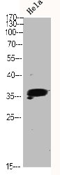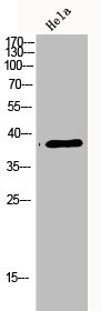 Western Blot analysis of HELA using p38 Polyclonal Antibody.