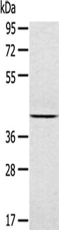 Gel: 8%SDS-PAGE,Lysate: 40 μg,,Primary antibody: CSB-PA208890(MAPK9 Antibody) at dilution 1/200 dilution,Secondary antibody: Goat anti rabbit IgG at 1/8000 dilution,Exposure time: 30 seconds