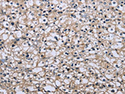The image on the left is immunohistochemistry of paraffin-embedded Human prostate cancer tissue using CSB-PA059696(MAPRE3 Antibody) at dilution 1/20, on the right is treated with fusion protein. (Original magnification: ×200)