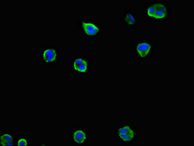 Immunofluorescent analysis of MCF-7 cells using CSB-PA03829A0Rb at dilution of 1:100 and Alexa Fluor 488-congugated AffiniPure Goat Anti-Rabbit IgG(H+L)
