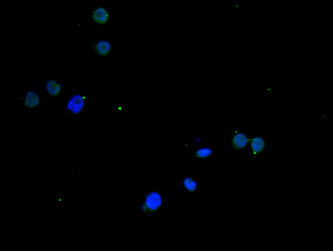 Immunofluorescence staining of MCF7 cell with CSB-PA882135LA01HU at 1:30, counter-stained with DAPI. The cells were fixed in 4% formaldehyde and blocked in 10% normal Goat Serum. The cells were then incubated with the antibody overnight at 4C. The secondary antibody was Alexa Fluor 488-congugated AffiniPure Goat Anti-Rabbit IgG(H+L).