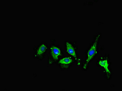 Immunofluorescent analysis of Hela cells using CSB-PA013632LA01HU at dilution of 1:100 and Alexa Fluor 488-congugated AffiniPure Goat Anti-Rabbit IgG(H+L)