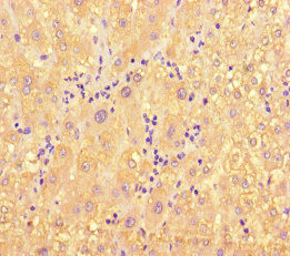 Immunohistochemistry of paraffin-embedded human liver tissue using CSB-PA013632LA01HU at dilution of 1:100