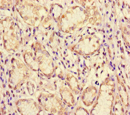 Immunohistochemistry of paraffin-embedded human gastric cancer using CSB-PA013632LA01HU at dilution of 1:100