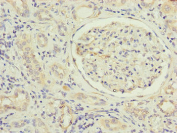 Immunohistochemistry of paraffin-embedded human kidney tissue using CSB-PA812879ESR1HU at dilution of 1:100