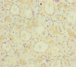 Immunohistochemistry of paraffin-embedded human kidney tissue using CSB-PA014706ESR2HU at dilution of 1:100