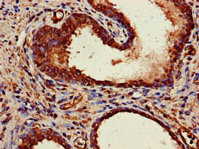 Immunohistochemistry of paraffin-embedded human prostate cancer using CSB-PA014786EA01HU at dilution of 1:100