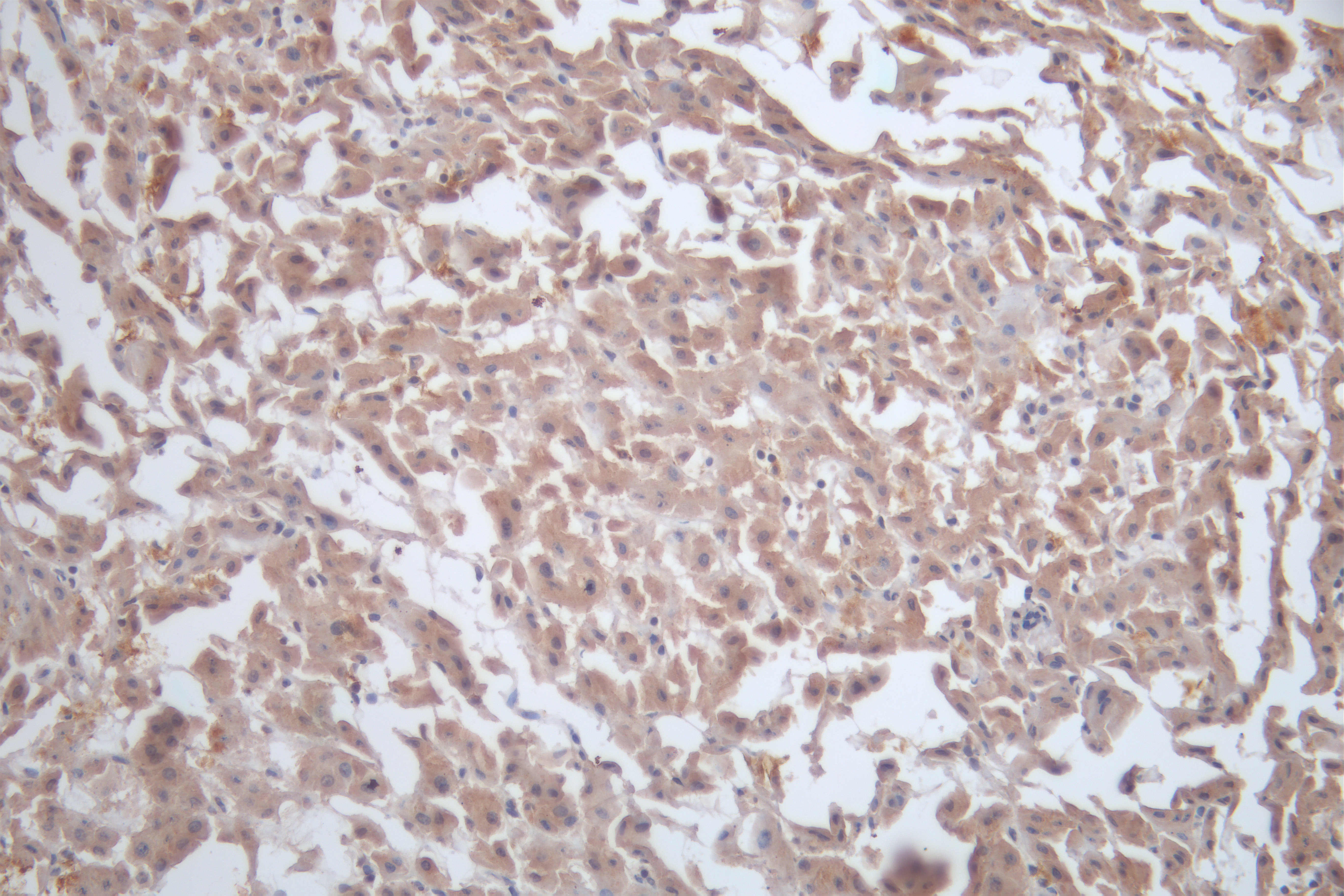 IHC image of CSB-PA17384A0Rb diluted at 1:100 and staining in paraffin-embedded human liver cancer performed on a Leica BondTM system. After dewaxing and hydration, antigen retrieval was mediated by high pressure in a citrate buffer (pH 6.0). Section was blocked with 10% normal goat serum 30min at RT. Then primary antibody (1% BSA) was incubated at 4°C overnight. The primary is detected by a Goat anti-rabbit polymer IgG labeled by HRP and visualized using 0.05% DAB.