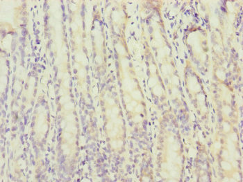 Immunohistochemistry of paraffin-embedded human small intestine tissue using CSB-PA669874ESR1HU at dilution of 1:100