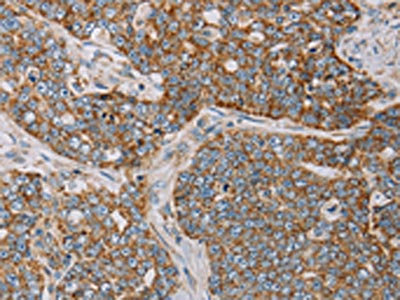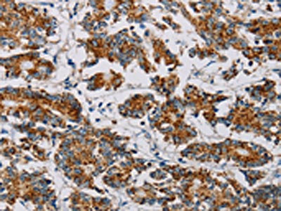 The image on the left is immunohistochemistry of paraffin-embedded Human cervical cancer tissue using CSB-PA132736(MTFP1 Antibody) at dilution 1/20, on the right is treated with fusion protein. (Original magnification: ×200)
