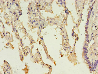 Immunohistochemistry of paraffin-embedded human lung tissue using CSB-PA015159LA01HU at dilution of 1:100
