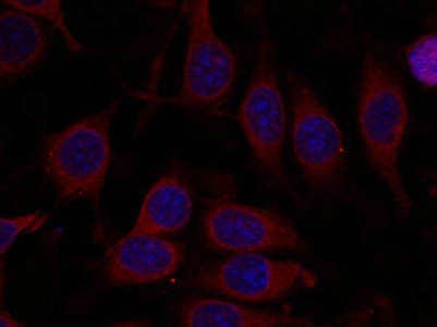 Immunofluorescence staining of methanol-fixed MCF7 cells using mTOR(Ab-2448) Antibody.