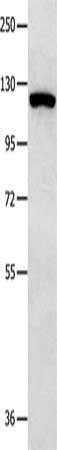 Gel: 8%SDS-PAGE, Lysate: 50 μg, Lane: 823 cells, Primary antibody: CSB-PA110757(MVP Antibody) at dilution 1/350, Secondary antibody: Goat anti rabbit IgG at 1/8000 dilution, Exposure time: 1 second