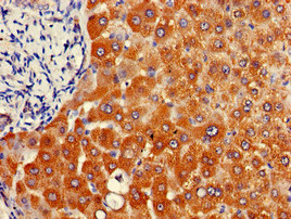 Immunohistochemistry of paraffin-embedded human liver tissue using CSB-PA015464LA01HU at dilution of 1:100
