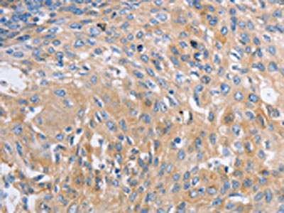 The image on the left is immunohistochemistry of paraffin-embedded Human cervical cancer tissue using CSB-PA059985(NBEA Antibody) at dilution 1/60, on the right is treated with synthetic peptide. (Original magnification: ×200)