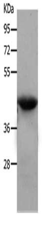 Gel: 10%SDS-PAGE, Lysate: 30 μg, Lane: Mouse heart tissue, Primary antibody: CSB-PA238244(NDRG4 Antibody) at dilution 1/1200, Secondary antibody: Goat anti rabbit IgG at 1/8000 dilution, Exposure time: 10 seconds