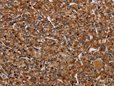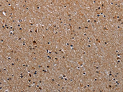 The image on the left is immunohistochemistry of paraffin-embedded Human brain tissue using CSB-PA785454(NDUFA8 Antibody) at dilution 1/40, on the right is treated with synthetic peptide. (Original magnification: ×200)