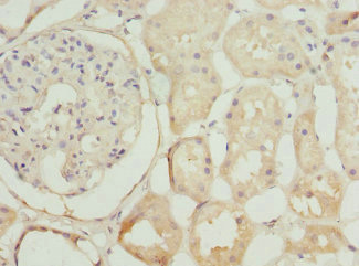 Immunohistochemistry of paraffin-embedded human kidney tissue using CSB-PA015701ESR1HU at dilution of 1:100