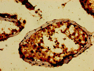 Immunohistochemistry of paraffin-embedded human testis tissue using CSB-PA837435LA01HU at dilution of 1:100