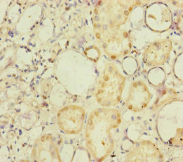 Immunohistochemistry of paraffin-embedded human kidney tissue using CSB-PA846105ESR1HU at dilution of 1:100