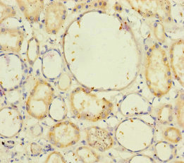Immunohistochemistry of paraffin-embedded human kidney tissue using CSB-PA846105ESR2HU at dilution of 1:100