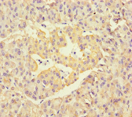 Immunohistochemistry of paraffin-embedded human pancreatic tissue using CSB-PA17249A0Rb at dilution of 1:100