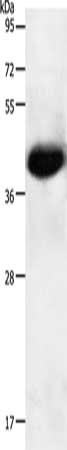 Gel: 10%SDS-PAGE, Lysate: 50 μg, Lane: Mouse heart tissue, Primary antibody: CSB-PA084270(NGFR Antibody) at dilution 1/950, Secondary antibody: Goat anti rabbit IgG at 1/8000 dilution, Exposure time: 20 seconds
