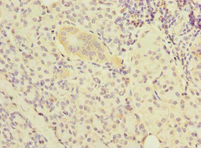 Immunohistochemistry of paraffin-embedded human pancreatic tissue using CSB-PA015918LA01HU at dilution of 1:100