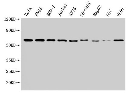 Positive WB detected in: Hela whole cell lysate, K562 whole cell lysate, MCF-7 whole cell lysate, Jurkat whole cell lysate, A375 whole cell lysate, SH-SY5Y whole cell lysate, HepG2 whole cell lysate, U87 whole cell lysate, HL60 whole cell lysate