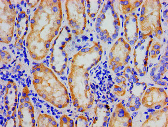 Immunohistochemistry of paraffin-embedded human kidney tissue using CSB-PA016059LA01HU at dilution of 1:100