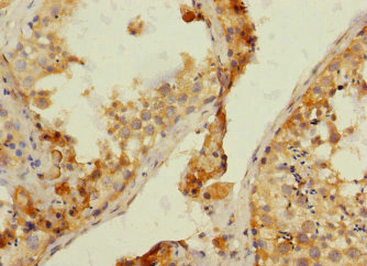 Immunohistochemistry of paraffin-embedded human testis tissue using CSB-PA883410ESR2HU at dilution of 1:100