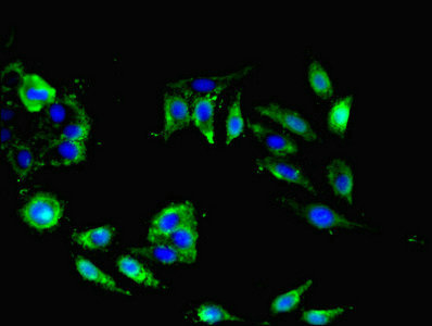 Immunofluorescent analysis of Hela cells using CSB-PA670967LA01HU at dilution of 1:100 and Alexa Fluor 488-congugated AffiniPure Goat Anti-Rabbit IgG(H+L)