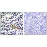 Immunohistochemistry analysis of paraffin-embedded human tonsil tissue using NYREN18 antibody.