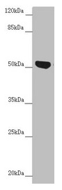 Predicted band size: 54 kDa