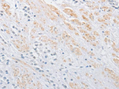 The image on the left is immunohistochemistry of paraffin-embedded Human prostate cancer tissue using CSB-PA110084(OLFM1 Antibody) at dilution 1/30, on the right is treated with fusion protein. (Original magnification: ×200)